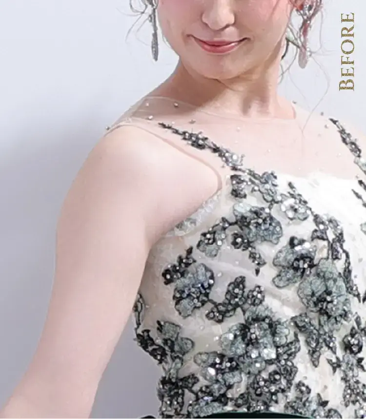 「写真写りが悪くて撮影が苦手」 、 「二の腕が気になる」 、 「肩のラインや背中を出すのが苦手」