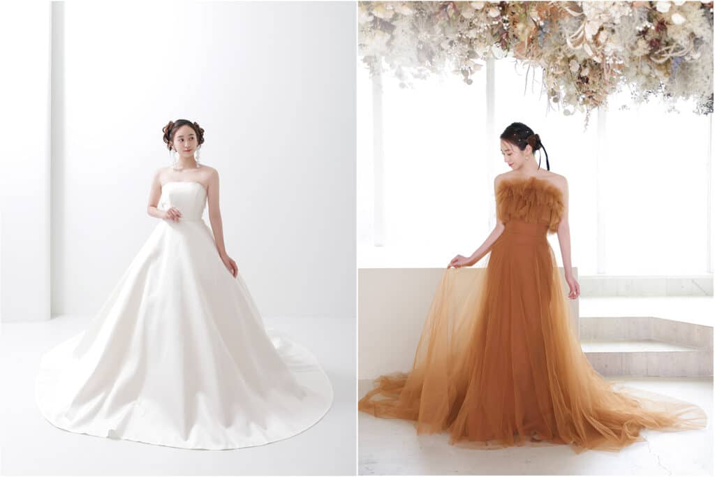 ウェディングドレスにはさまざまな形があるので、理想に合ったタイプを選びましょう。