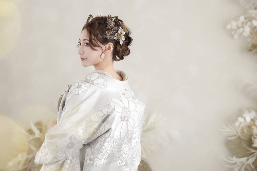 白無垢は最も格式の高い正礼装であり、上品でおしとやかな印象に仕上がります。