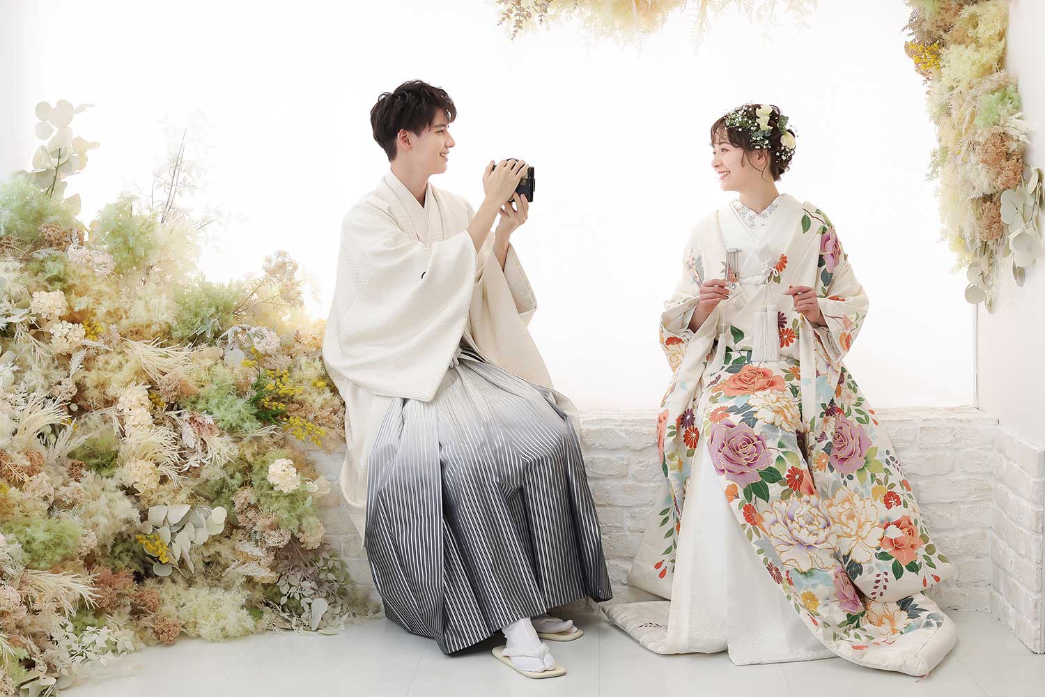 室内での撮影のため、「地味な写真になるのでは」と心配になるかもしれませんが、本格的な機材とプロのスタッフが揃っていることもあり、モデルになった気分で満足いく撮影を楽しめるでしょう。スタジオにはチャペル風や神社風のセットがいくつも用意されており、さまざまな小物を駆使して臨場感あふれる仕上がりになるよう工夫されています。