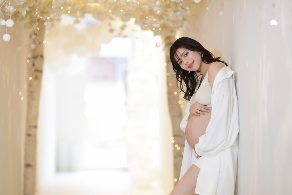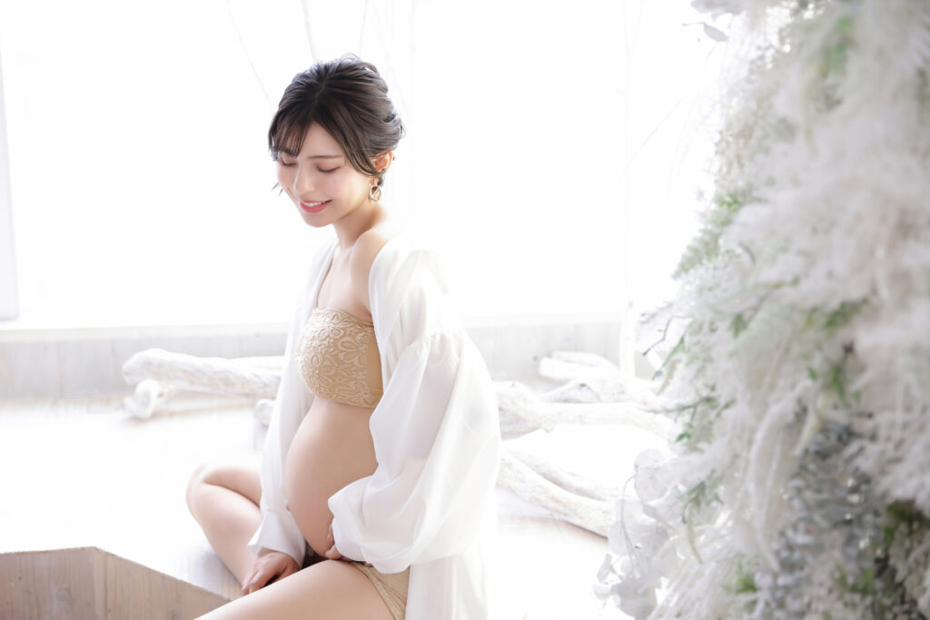 フォトスタジオでは、天候や気候に左右されることなく、美しいマタニティフォトの撮影が可能です。