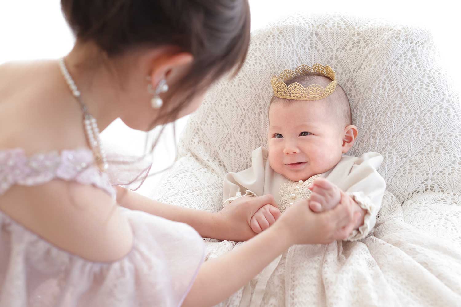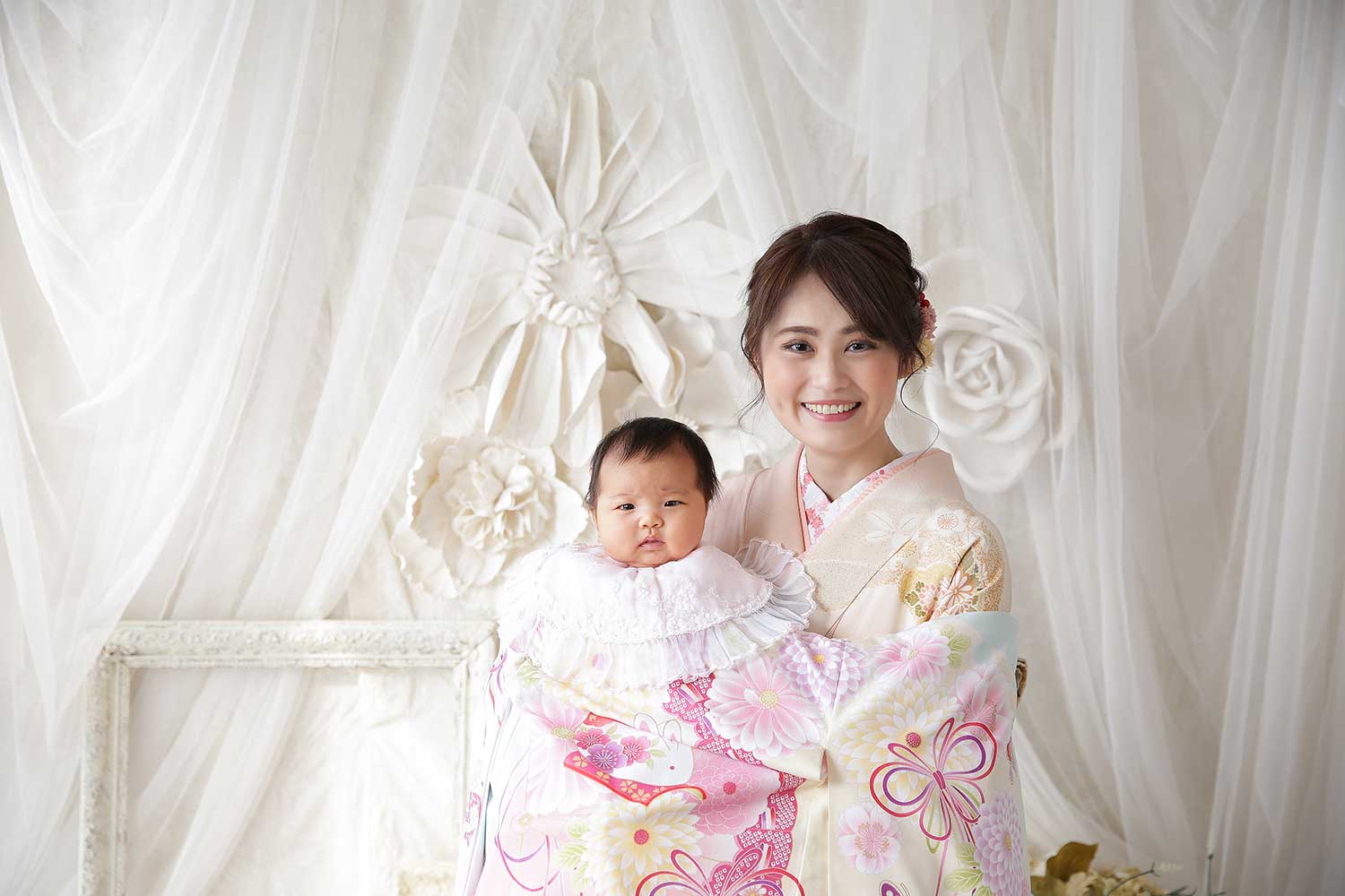 特に寒さが気になる冬は、暖かい室内での記念撮影がおすすめです。スタジオエミュなら、「お祝い着」のレンタルが無料なので、祝い着を持っていない人も安心してお宮参りに臨めますよ。また、撮影後は祝い着レンタルでそのまま外出することも可能です。
