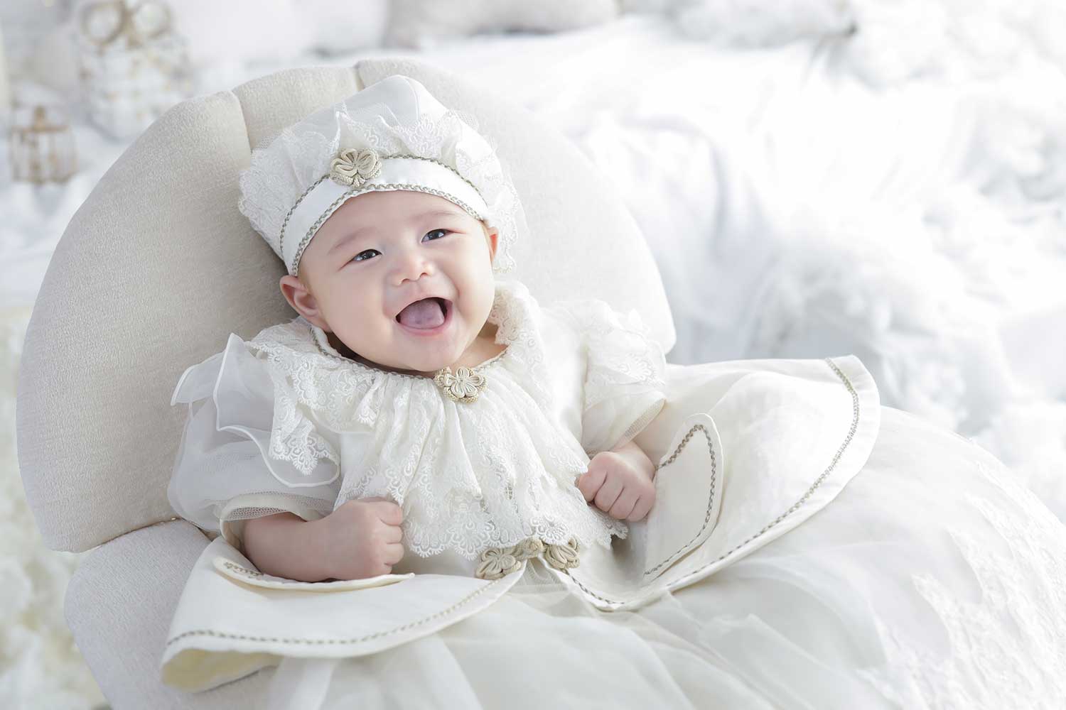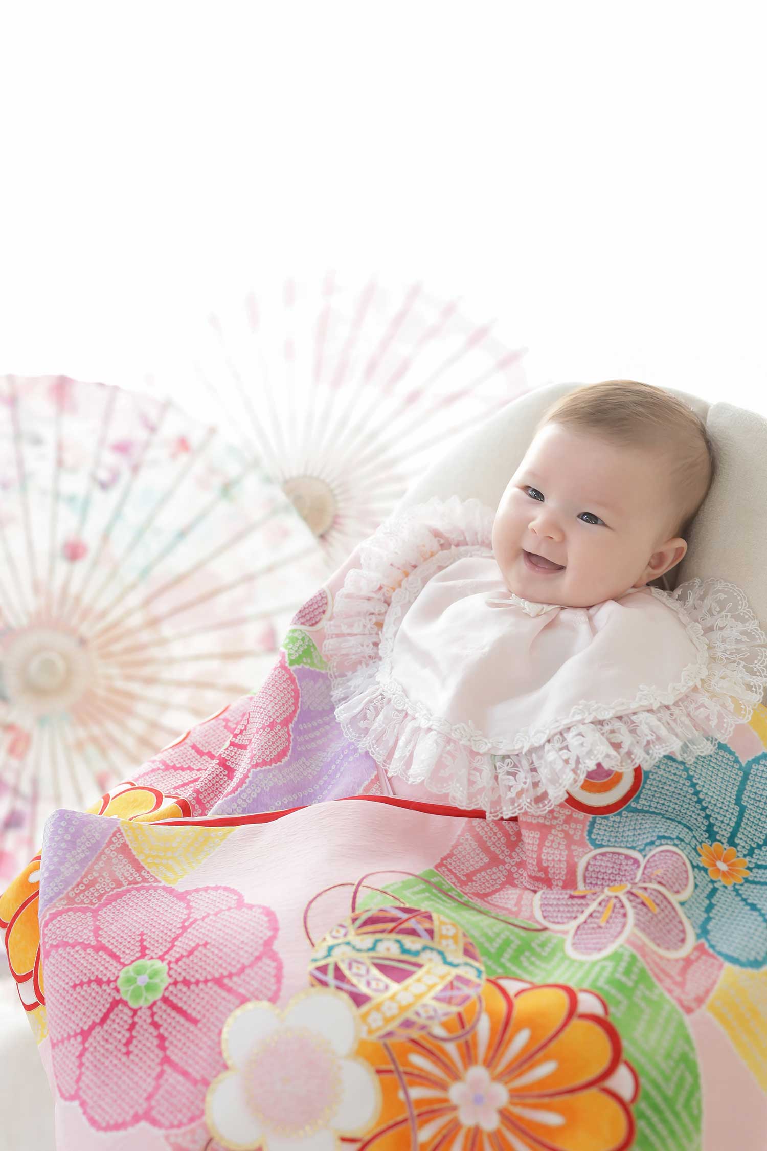 .祝い着は男の子が「熨斗目模様(のしめもよう)」、女の子が「友禅模様(ゆうぜんもよう)」が定番になっています。和装と洋装の違いなので、ベビードレスがマナー違反というわけではありません。