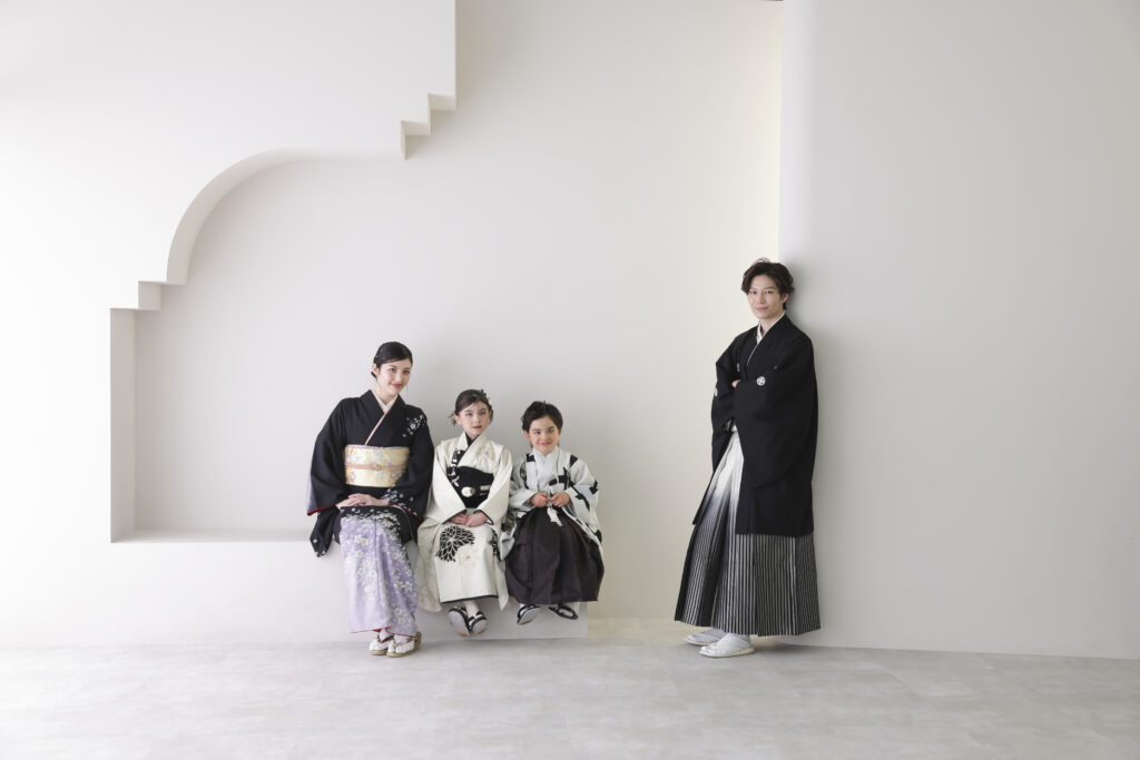 七五三の記念に、家族写真を撮影するご家庭もあるでしょう。その場合は、お子さんの単独写真以外に、家族での写真撮影が可能かどうか確認しておくと安心です。また、家族写真の撮影ができる場合、家族の衣装やヘアメイクに対応しているかも併せて確認しましょう。家族写真を撮影する場合は、主役のお子さんの衣装や雰囲気に合わせ、家族全員が統一感のある衣装・ヘアメイクを選ぶように心がけてください。