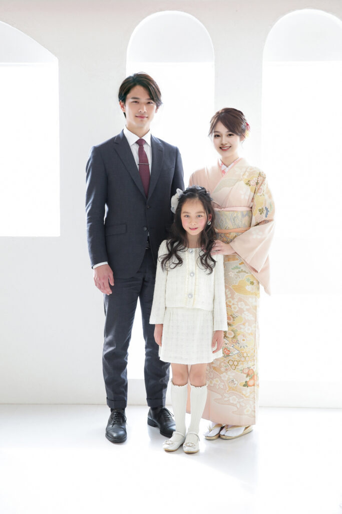 スタジオ撮影では、ご両親がカメラ役になることがないため、家族全員での記念撮影ができます。また、天候に影響されない点やプロのカメラマンによるハイクオリティな写真が撮れる点、衣装のレンタル数が豊富な点など、メリットが多いことも特徴です。