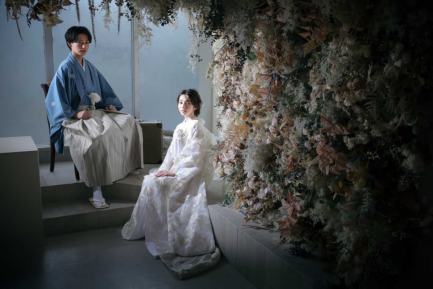 和装・洋装問わず、さまざまな衣装からお好みのものをお選びいただき、専属のヘアメイクスタッフとプロのカメラマンがアテンドしながら、最高のフォトウェディングを叶えます。