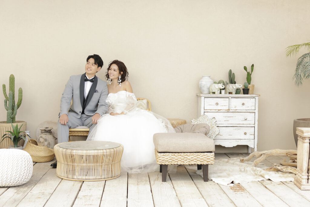 まるでロケ撮影のようなスタジオで、結婚式では撮れない画を写し出します。思い出の小物を持ち込んでいただけるので、おふたりらしいフォトウェディングを実現できるでしょう。