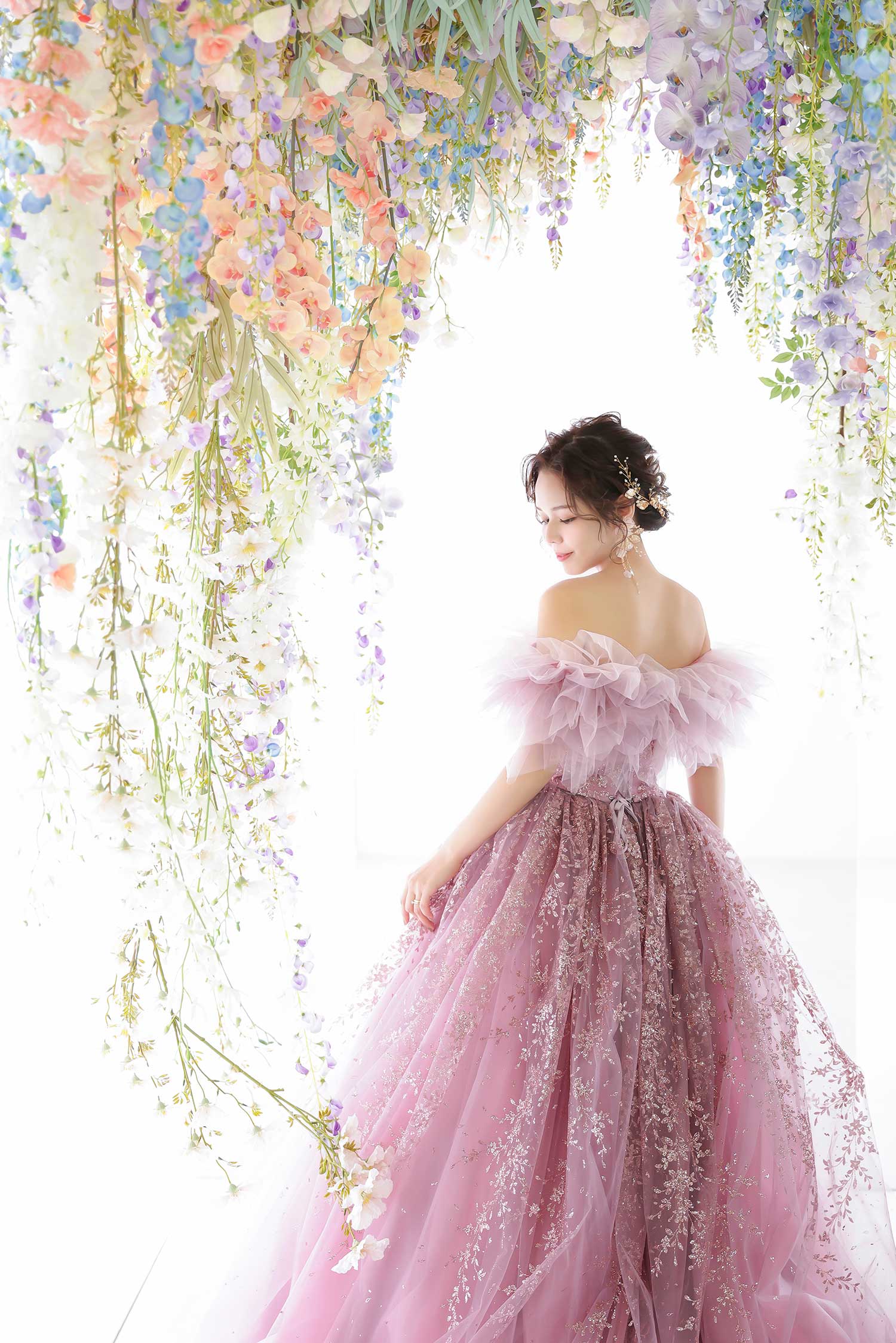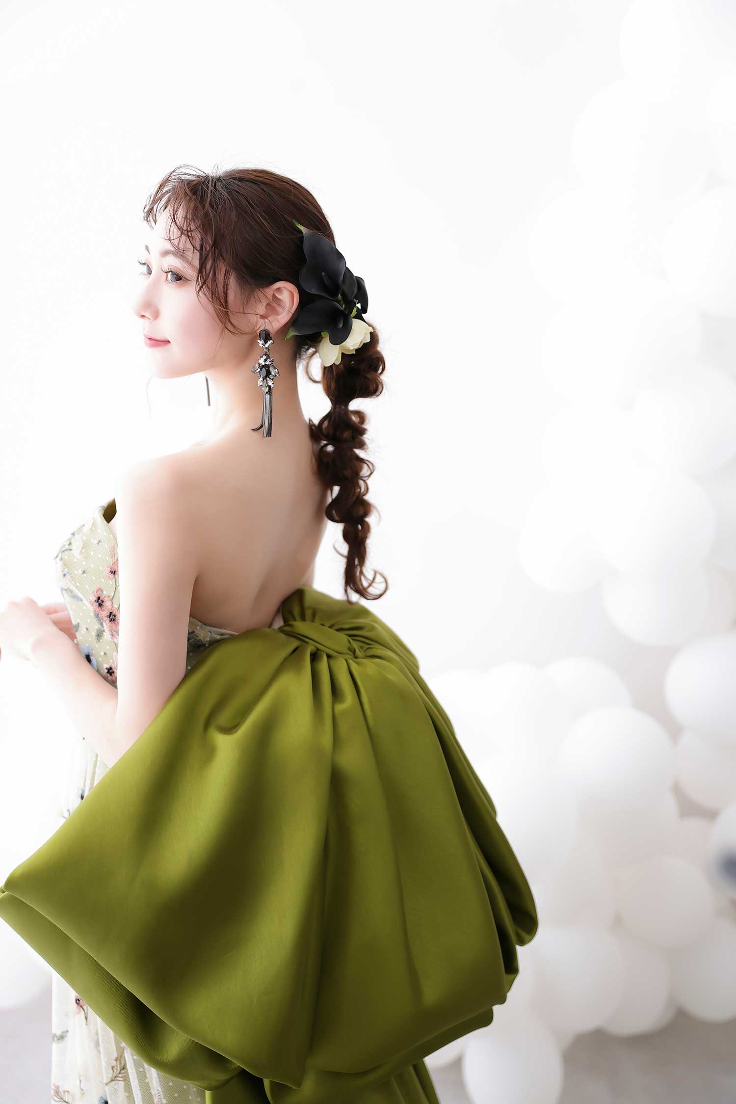 また、シンプル寄りなドレスならヘアスタイルもシンプルに、派手めのドレスならヘアスタイルも華やかにすると、ドレスとヘアスタイルが調和します。