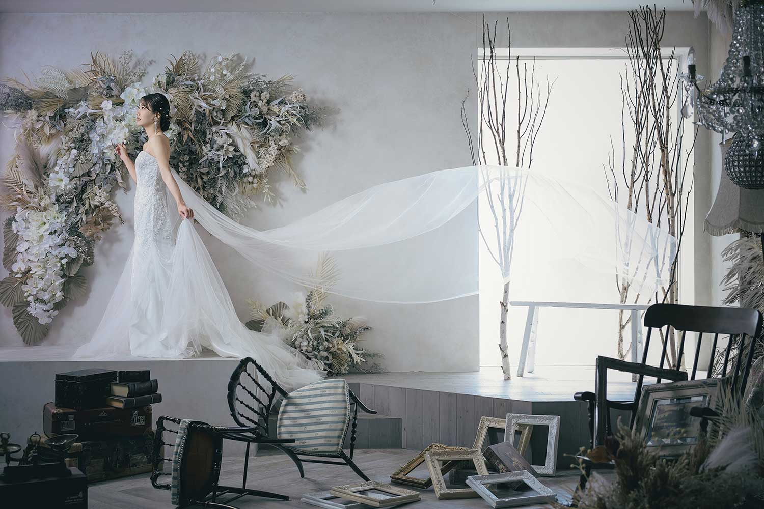 スタジオエミュは、トレンドを押さえた衣装やヘアメイクで、一生の思い出になるフォトウェディングを撮影できます。ヘアメイクを担当するのは、撮影現場の経験が豊富なプロの専属ヘアメイクです。花嫁さまにぴったりのヘアメイクで、写真にどう写るかを計算した上でおしゃれに仕上げます。