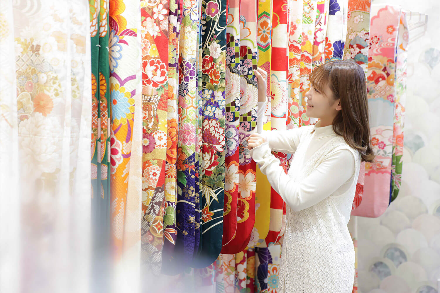 例えば振袖では伝統的な柄から現代的なデザインまで、様々なタイプが揃っています。赤や白といった定番カラーはもちろん、パステルカラーや個性的な柄物まで、好みや肌の色に合わせて選べるんです。
