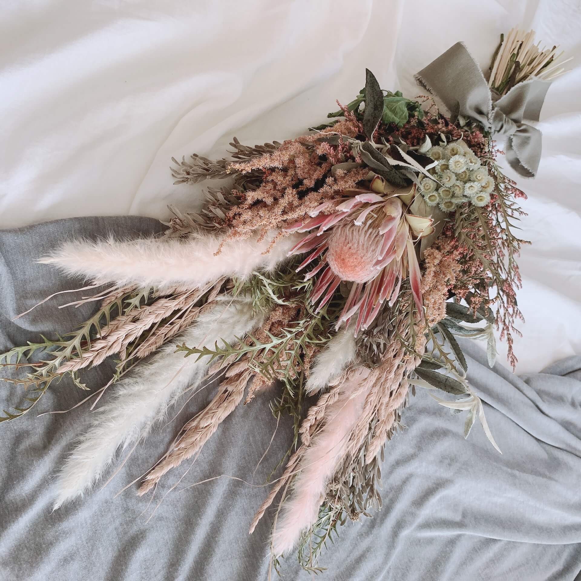 ナチュラルな雰囲気が好きな方にはドライフラワーの花束がぴったりです。時間とともに色が変化し、味わい深くなっていくのが魅力です。