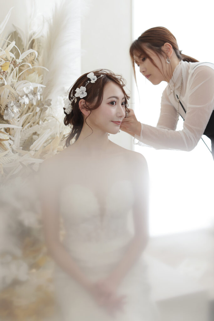 受付~撮影終了まで約1~2時間程度となり、その後お写真選びが1時間前後となり、受付からトータルで3時間程度となります。衣装の追加がある場合はその分お時間がかかります。