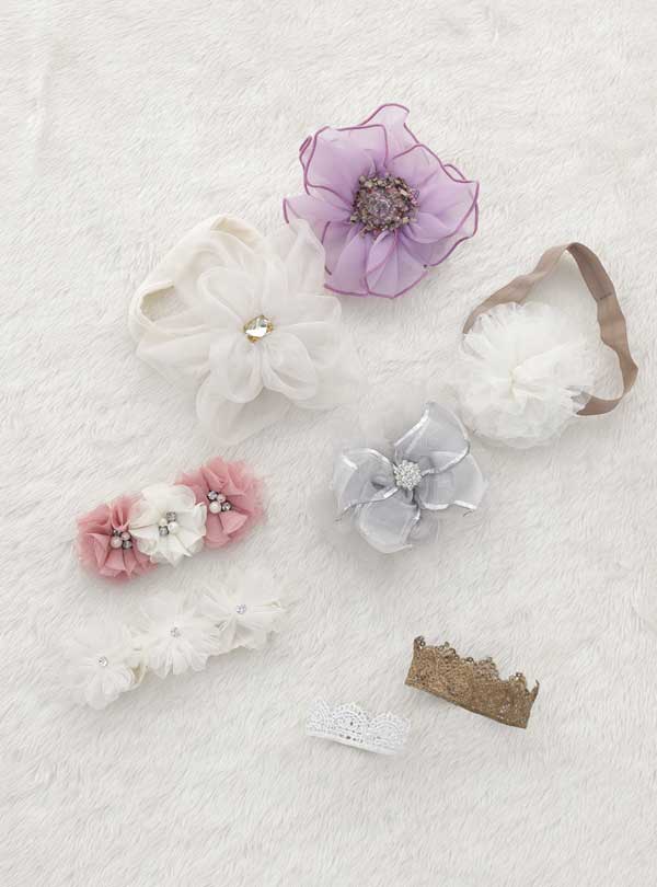 チュール素材で大ぶりサイズのヘッドドレスはゴムバンド付きで髪の毛の少ないお子様にも着用していただけます。クラウンは頭に乗せて撮影できるタイプで髪の毛の少ないお子様にも利用できます。 大きめのヘッドアクセサリーをつけることで赤ちゃんの小さなお顔をより小さくそして華やかに彩ります。