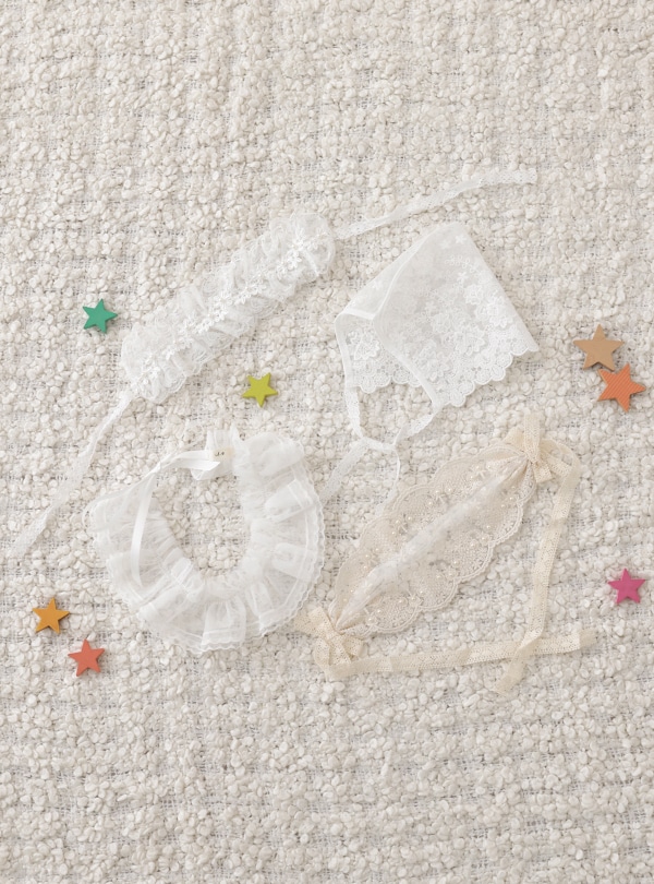 ふわりと軽やかなオフホワイト、ベージュのレースが、お子様を優しく包み込むバブーシュカ。 繊細な花柄のレースは、まるで妖精の羽衣のよう。可憐で上品な雰囲気は、大切な記念写真にぴったりです。柔らかいレースのアイテムをコーディネートにプラスして今っぽい雰囲気も楽しんでみてはいかがでしょう♡
