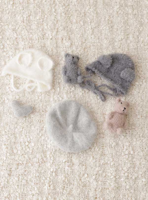 1週間~2ヵ月のお子様に選んでいただけるくまの帽子は白とグレーで背景によってお似合いなアイテムをセレクトします。どちらの帽子もふわふわの素材で裸んぼの撮影にピッタリ♪ ベレー帽は6ヵ月~1歳のお子様選んでいただけるベレー帽です。普段とちがう印象のお子様の姿を楽しめます。