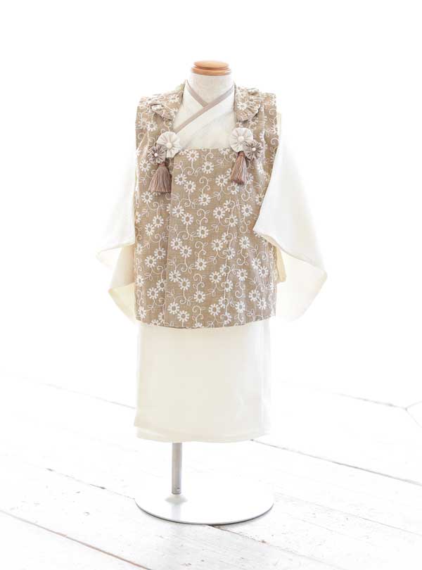 伝統的な和の美しさと現代的なデザインが調和した洗練された一着です。落ち着いたベージュのベースに繊細な花柄が施された被布が、優雅で品のある印象を与えます。シンプルでありながらも、細部にまでこだわりが感じられるデザインは特別な日を一層引き立てます。 この衣装は、古典的なスタイルを大切にしつつも、モダンな感性を取り入れた魅力な装いです。