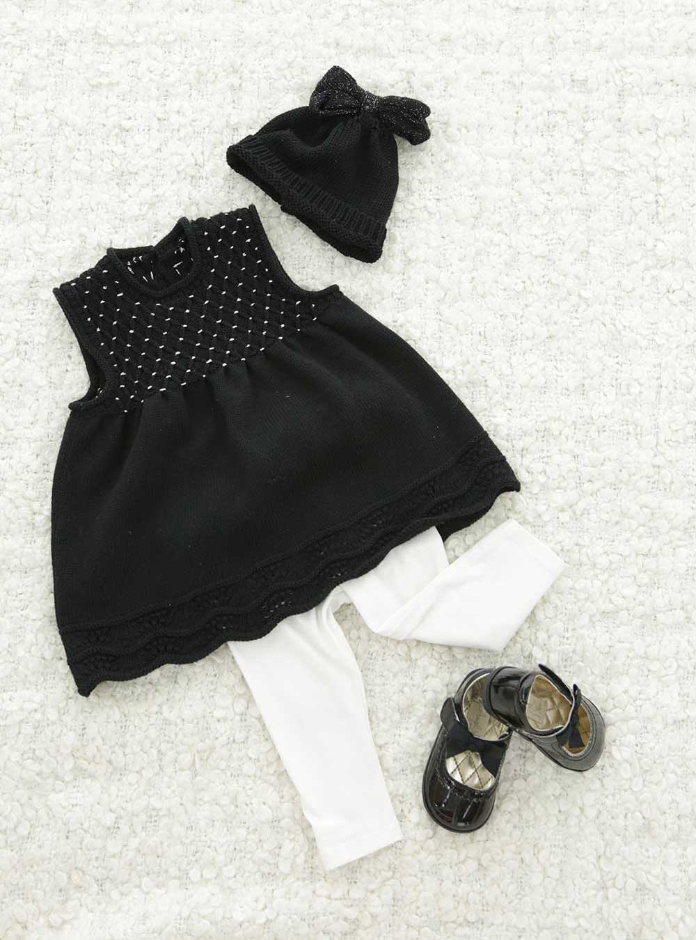 セパレートタイプのブラック×ホワイトのセレクト衣装。ニット素材のミニワンピースにホワイトタイツを合わせたモノトーンコーデです。大きなリボンが可愛いニット帽を合わせて海外キッズモデルのような雰囲気に♪ 胸元のドットのデザインもポイントです。大人顔負けのコーディネートでクールな雰囲気がお好きな方におすすめの1着です。