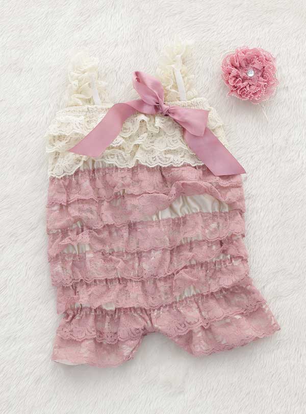 衣装全体にレースのフリルがあしらわれており、ボリュームたっぷりの可愛らしいデザイン。ピンクとオフホワイトで女の子に人気のカラーです。 アクセントとなる胸元の大きなリボンが女の子の華やかさ可愛らしさをより一層引き立ててくれるサロペットです。
