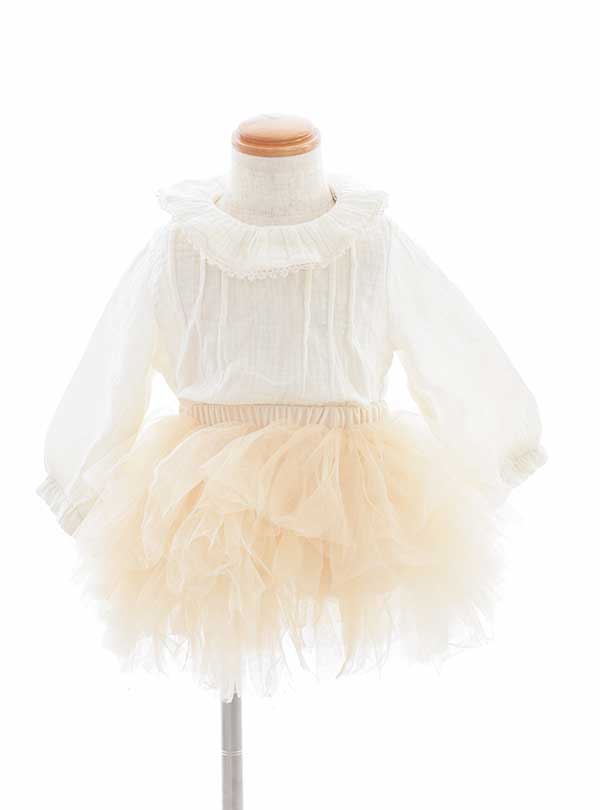 首元にフリルとレース、スカートにもフリルが付いている女の子の可愛い!を詰め込んだ衣装。白とイエローベージュのナチュラル爽やかな色の組み合わせなのでどんな赤ちゃんにも合わせやすく、くどくなりすぎずに着ていただけるところがオススメ♪ 1人撮影はもちろん、家族撮影での私服撮影の代用としても違和感なく着ていただけます。