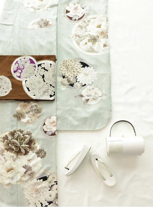 エレガントで上品な雰囲気が漂う美しいデザインの振袖。淡い水色の地に、白やモノトーンの花々が繊細に描かれたデザインが特徴です。牡丹や梅など、古典的な花模様が全体に優雅さと深みを持たせ、落ち着いた美しさを演出します。 柔らかな色調が持つ上品さと洗練された雰囲気が、装う人を一層引き立てます。帯にはゴールドと白のシンプルながらも気品あるデザインが施され、振袖全体に均整の取れたバランスをもたらします。