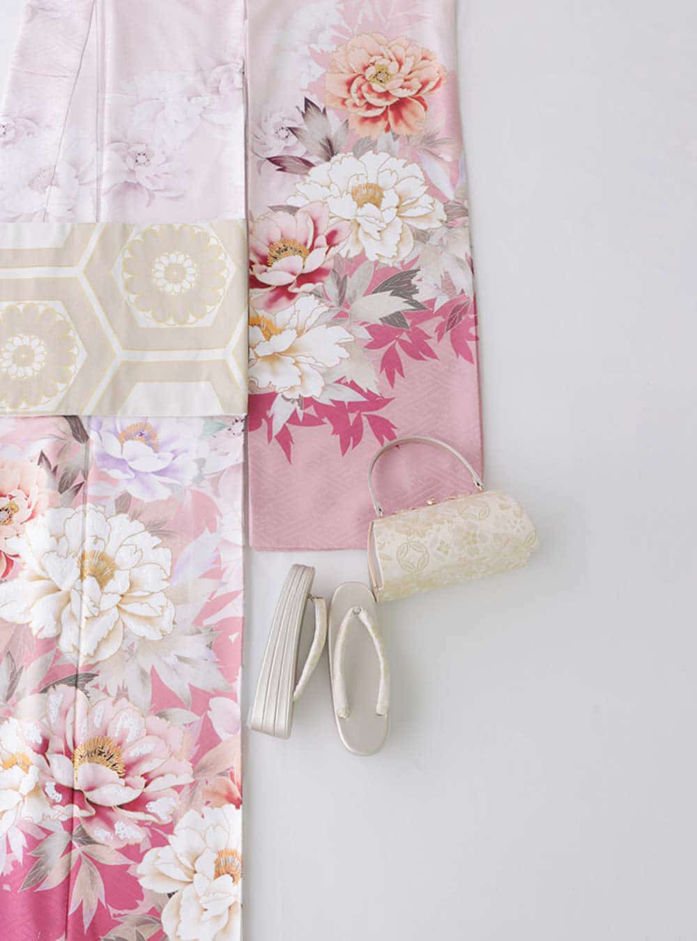 淡い可愛らしいピンクの生地で大きい牡丹の柄が目を引く柔らかい印象のCaran coronのブランド振袖。 帯も統一感のある上品な色味で甘いコーディネートに仕上げることも、小物でアクセントカラーを取り入れ大人コーデを楽しむこともできます。自分好みのコーディネートをお楽しみください。