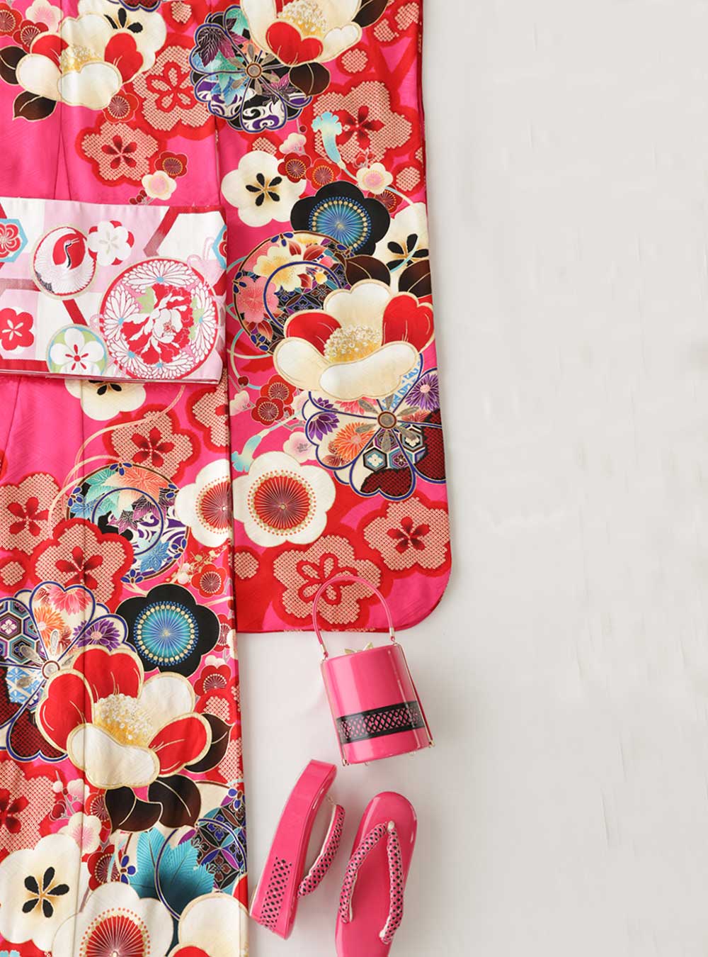 鮮やかなピンクの着物に梅・椿模様が可愛い振袖。玉城ティナがデザインする紅一点のブランド振袖は現代風にアレンジした古典柄が特徴的で近年人気を集めています。 カラー使いも特徴的で、ピンクに入ったアクセントカラーのブルーがこの振袖の魅力を更に引き立てている。二十歳らしい華やかな模様と色使いでひと際目を引く振袖です。