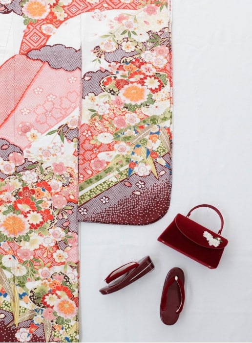 すっきりとした優しい白が基調とされた1着。白だけでなく、紫やピンクの絞り柄が全体的に入っているのも珍しく、オススメのポイント。大きな花の丸いフォルムの重なりがかわいらしく、ややレトロな雰囲気も漂います。 どんな色味の小物にも似合い、合わせ方次第でいろんな雰囲気になるので、小物選びが特に楽しめる振袖です。
