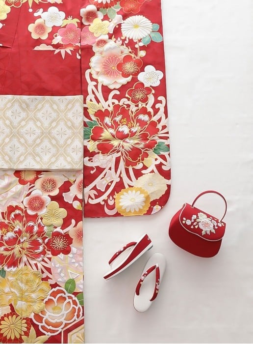 ピンク味のある赤の振袖。大ぶりでゴージャスな柄と金糸を纏った豪華なデザインで、 袖部分には個性的なデザインも使用し、赤系の振袖の中でも遊び心のある一着。 やわらかい印象のある赤色で、日本人の肌の色にも馴染みやすく、セットのゴールド帯がより華やかに。大振りのお花が使われているこの振袖は、背の高い方にオススメの1着。