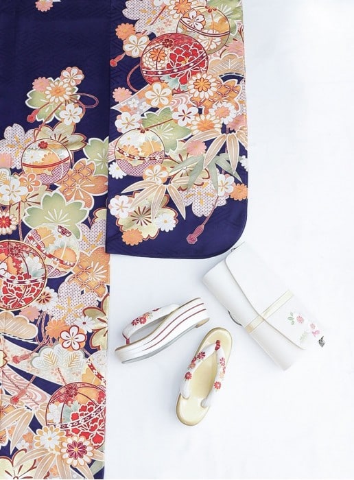 紫と紺色が混じった絶妙な色合いがクールな印象を醸し出す振袖。中央に大きく転がるように弾む鞠が着物を華やかに演出し、古典的なテイストを作り出してくれます。 柔らかいお色で彩られた柄と地の紺色のコントラストが美しく上品に見せてくれるので大人可愛いを実現。寒色も暖色も楽しめ、肌色問わず楽しんでいただけます。