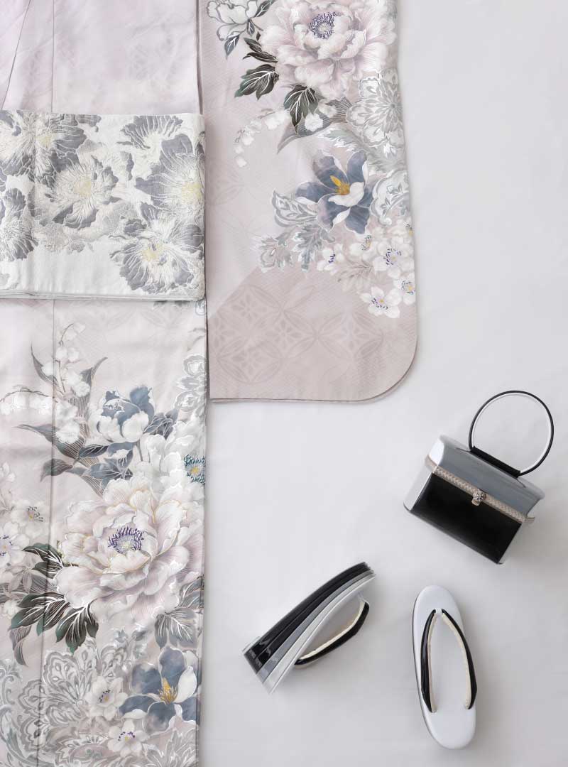 淡くやさしい色合いに、繊細な柄を重ねた柔らかな印象の振袖。主張しすぎないデザインなので、全体に自然なまとまりが生まれます。細かな柄が奥行きを演出し、近くで見ても写真に残しても美しい仕上がりに。落ち着いた雰囲気の中に程よい華やかさがあり、周りと被りたくない方にもオススメです。晴れの日を穏やかに彩る1着です。