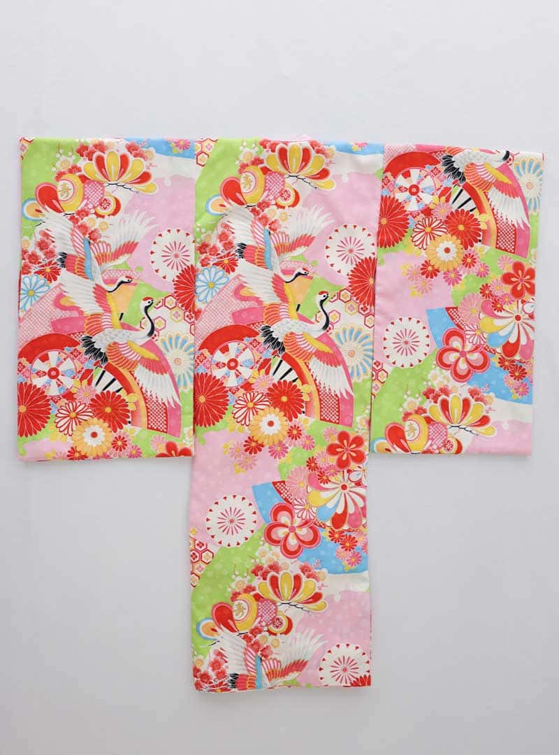 鮮やかな衣装は、伝統的な美しさを現代の感性で再解釈した一枚です。ピンクや緑、赤などの華やかな色使いが特徴で、全体に躍動感を与えています。デザインには、優雅に羽ばたく鶴や色とりどりの花々が描かれ、幸福と長寿の象徴がふんだんに盛り込まれています。 細部に至るまで丁寧に織り込まれた模様が、着る人の存在感を引き立てると同時に、見る者の心を魅了します。特別な行事や祝いの席で、一際目を引くこの衣装は古典美を愛する方にピッタリの一着です。