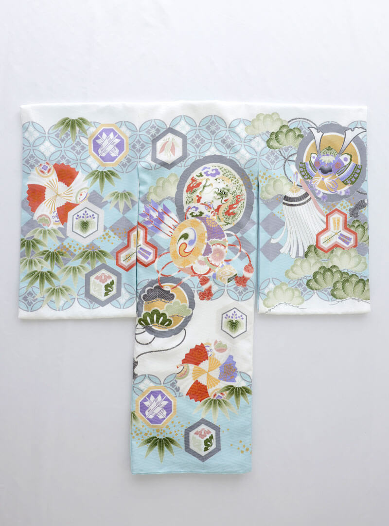 繊細な和柄と淡い色調で彩られた美しい着物です。伝統的な模様が散りばめられ、上品でありながらも華やかな印象を与えます。袖や裾に描かれた花柄や幾何学模様が、全体にバランスの取れたデザインを際立たせ、着る人の魅力を一層引き立てます。 特別な場面での装いとして、また和の美しさを体現する一着としてピッタリです。