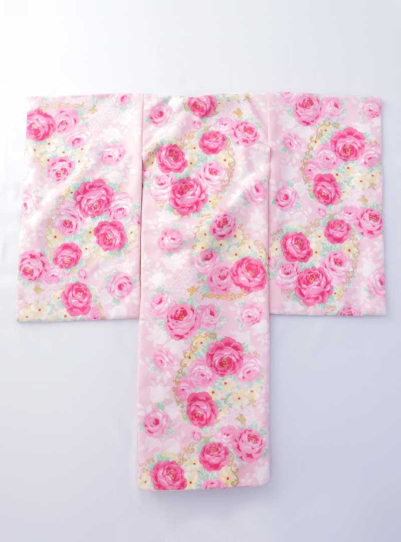 ピンクのローズを花束のように豪華に描いたSEIKO MATSUDAのブランド祝着。可愛いを追求した女の子らしい洋風のデザインが特徴のブランドです。ローズには上品、かわいらしさなどの花言葉があり女の子の幸福を願うおめでたい花です。 女の子らしく可愛らしい雰囲気がお好きな方、他と被らないデザインがお好きな方におすすめの祝着です。