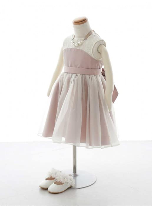 白のレースとくすみピンクのツートーンカラーのワンピースです。シンプルで上品な落ち着いた印象の1着。ウエストマークリボンは後ろで結んで後ろ姿も可愛らしく♪ 肩部分はレース生地で作られており女の子らしいデザインです。全体的にシンプルで上品なデザインなのでご家族やご兄弟撮影に参加されるお子様にもおすすめです。