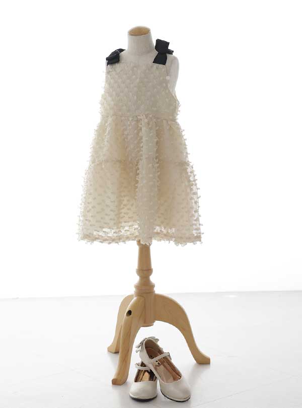 白と黒のコントラストがシンプルながらも、オシャレで洗練された印象のワンピースです。レースの素材が柔らかく優しい雰囲気で、女の子らしい愛らしい印象を与えます。 まだ幼さが残る3歳のお子様のキュートさと、少し背伸びした大人っぽさが絶妙にミックスされた可愛らしさが魅力のワンピースです。