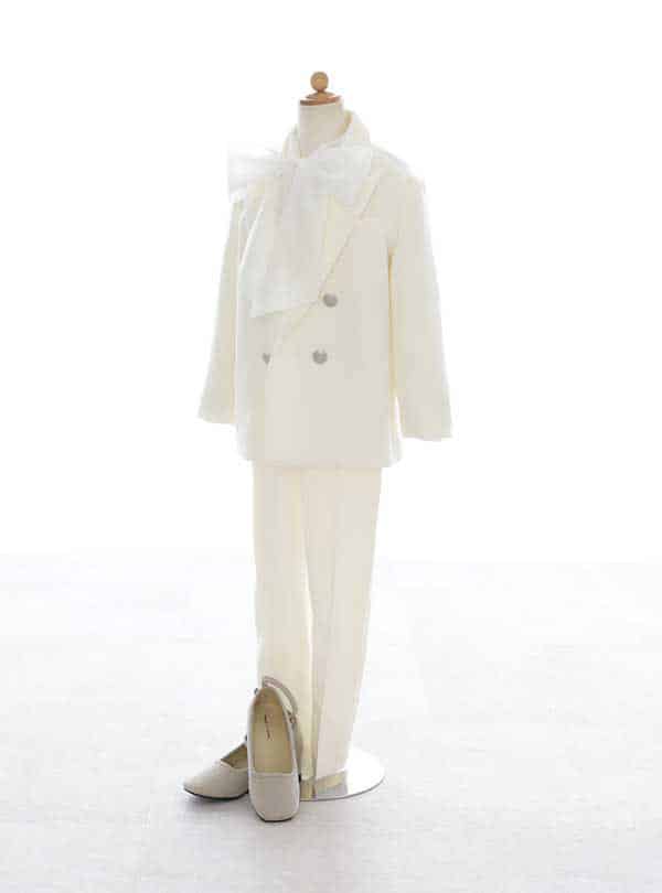 白のセットアップに首元のレースのリボンがポイントのコーディネートです。シンプルで洗練されたパンツスタイルにリボンが加わることで、上品な印象を与え、周りの視線をひきつけるアクセントになっています。 ヘアセットはタイトに仕上げると衣装とのバランスが良く、首元のリボンの可愛らしさが引き立ちます。