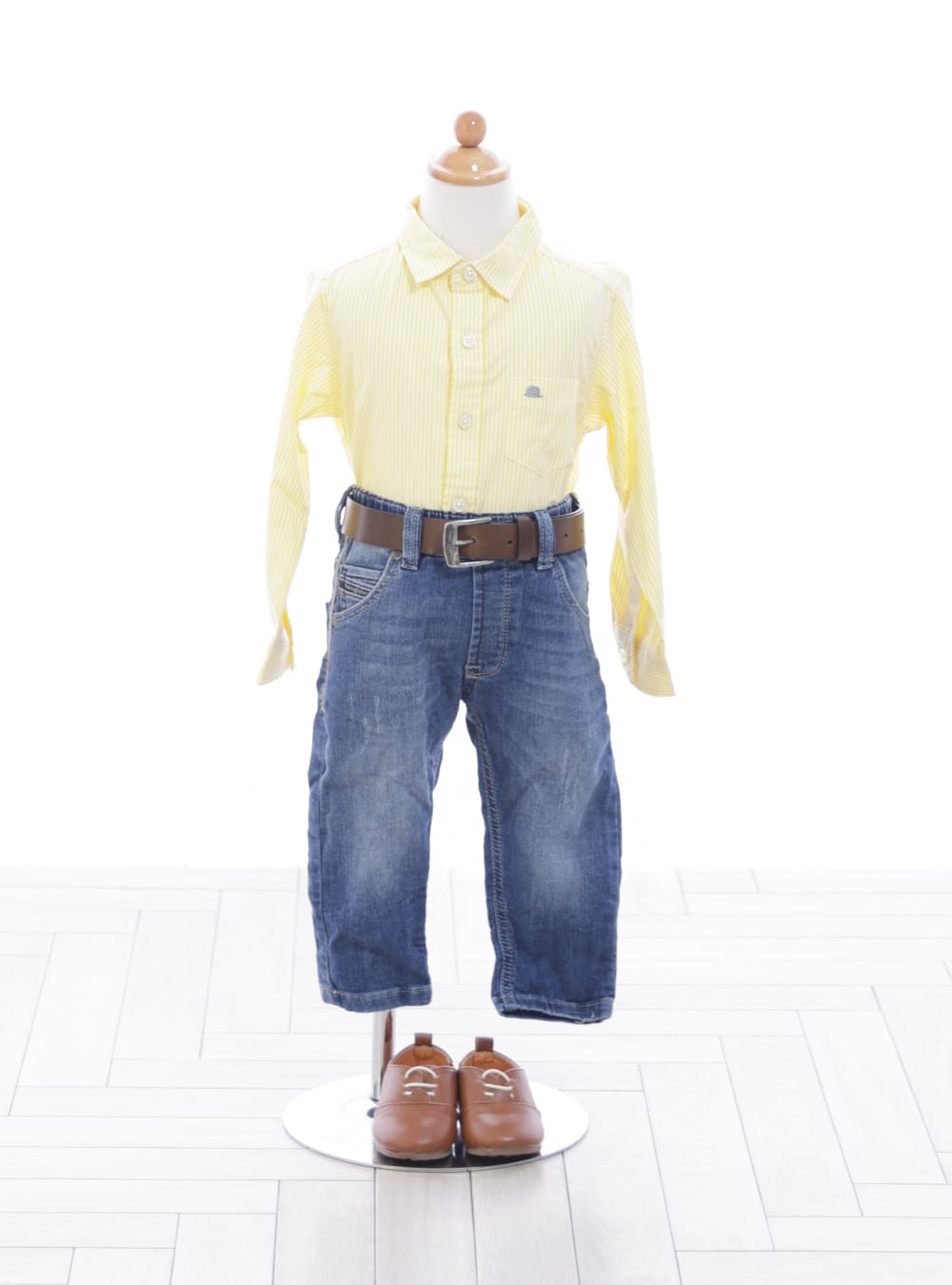 明るさと元気さをプラスするカラフルで楽しい一着です。鮮やかなイエローシャツの細かなストライプは動きに合わせて遊び心を演出します。 カラーブロックスタイルが新鮮さを与え、元気なお子様をより一層引き立てます。