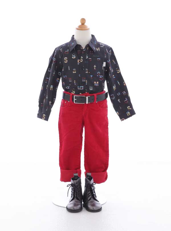 Paul Smithの遊び心が光るレタープリントシャツ。 ブラックにカラフルな英字が散りばめられ、赤パンツのアクセントで一気にお洒落感がアップ。足元のブーツでほどよく引き締め、特別な日にも映えるスマートな印象に。きちんと見えも、可愛さも両方叶う一着です。