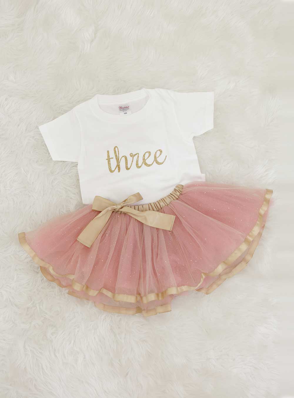 シンプルな「three」のロゴが入ったTシャツにピンクのチュチュを合わせたバースデーフォトで人気のセットです。ゴールドのロゴとピンクのチュチュの組み合わせでカジュアルで可愛らしい印象に。 パパママもTシャツとデニムなどカジュアルな雰囲気で合わせるのがおすすめ。またTシャツのラインナップはone~fiveまであるのでご兄弟で年齢ごとのTシャツを着て揃えても可愛いです。