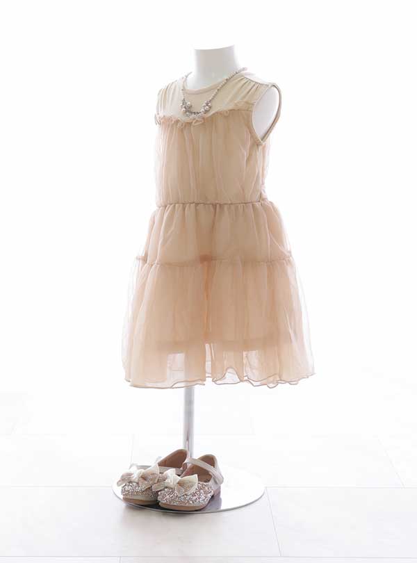 やさしいベージュカラーを基調とした柔らかいシフォンのような素材で仕立てたワンピースは透け感があり、涼しげに見えます。首元はシアー感のあるデザインが施されたりとシンプルながらも繊細な仕上がり。 ベージュカラーは肌馴染みが良く、ナチュラルなコーディネートがお好きな方におすすめの一着です。