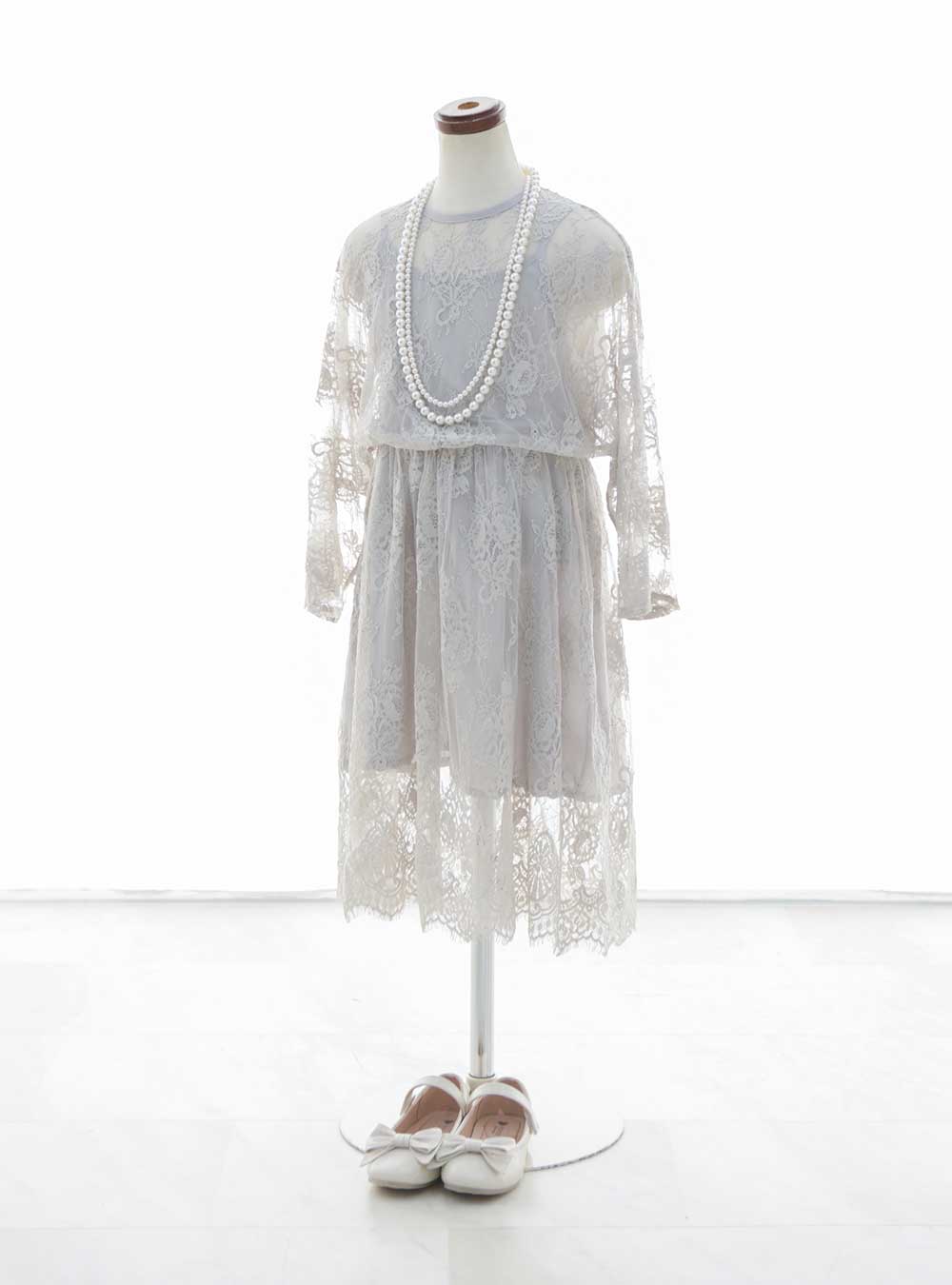 花柄をモチーフにした繊細なレースと淡いグレーのカラー。裾はスカラップデザインになっており、細部までこだわった総レースワンピースです。 2~3歳サイズでお色違いのご用意もございます。ご兄弟でお揃いにするのもおすすめです。