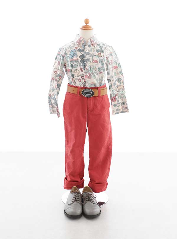 元気で遊び心あふれるセレクト衣装。アニマル柄のトップスが子供らしさを出すデザインで着るだけで楽しい気持ちになれる1着! 鮮やかな赤のパンツがスタイル全体をエネルギッシュな印象♪太いベルトがウエストのワンポイントになり大人っぽい要素を加えたコーディネートです。元気なパワフルな男の子にオススメの衣装です。