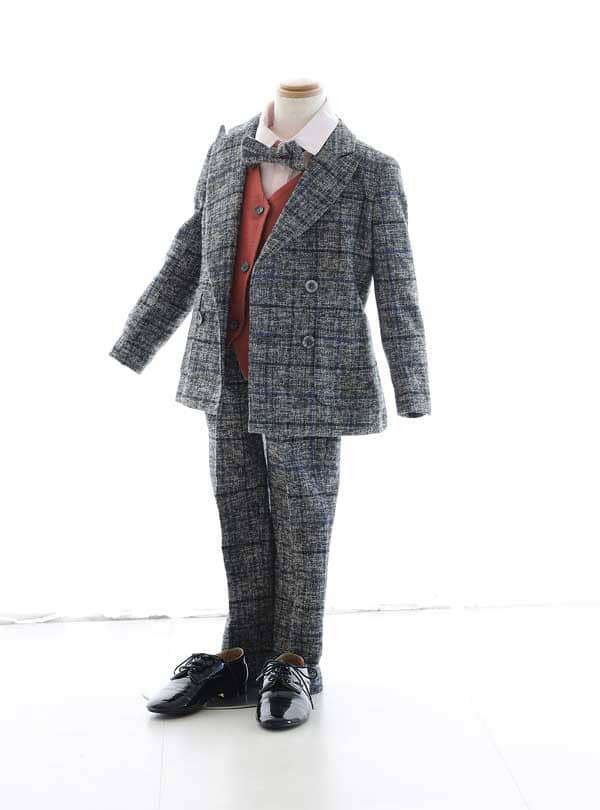 グレーチェックはクラシックながらもトレンド感があり上品な印象を与えます。蝶ネクタイがアクセントとなり上品かつ可愛らしさも演出します。中のベストもパンツと同じ柄で統一感があります。 かっちりとしたクールな写真を撮りたい方におすすめです。動きやすさも兼ね備えているので、様々なかっこいいポーズの撮影ができます。