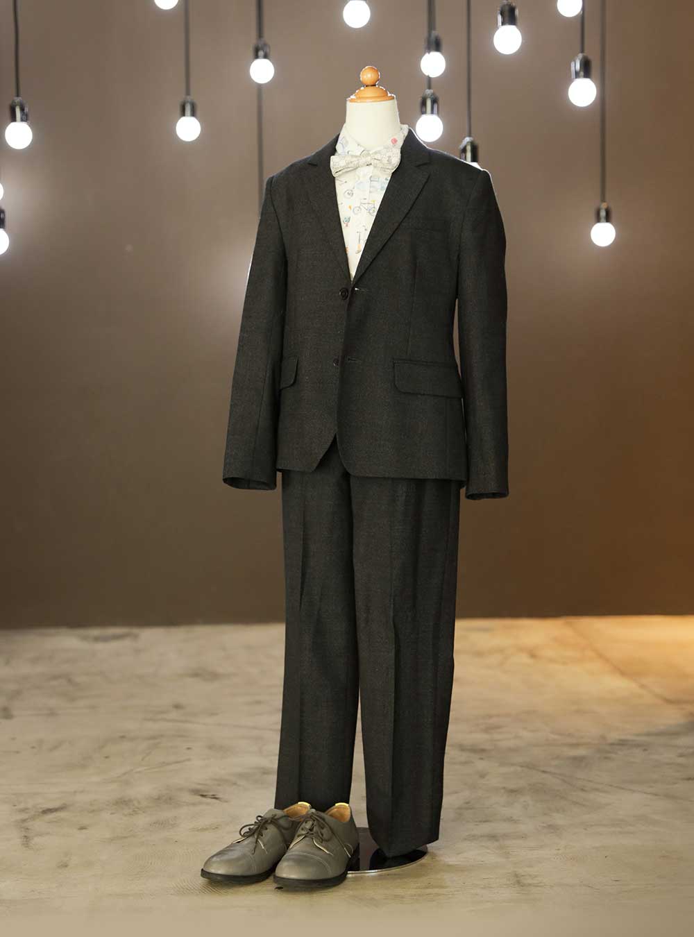 シンプルでありながらエレガントな印象を持つ上質なタキシードです。深みのあるチャコールグレーのジャケットは落ち着いた色合いと洗練されたデザインが特徴です。 パンツは同色のトーンでまとめられており、全体のコーディネートに一体感をもたらします。ストレートなラインのパンツはスーツ全体を引き締めながらも、リラックス感のあるスタイルを演出します。