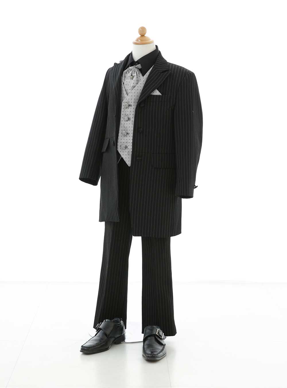 黒地にストライプが特徴的なタキシード。ジャケットとパンツは同素材のデザインでスタイリッシュな印象に!パンツはストレートのシルエットで、カチッとした雰囲気をプラスさせます。 ベストは光沢のある生地にさりげないドット柄のデザインで、ジャケットとのコントラストが効いた色使いが年代問わず好まれるフォーマルな1着。