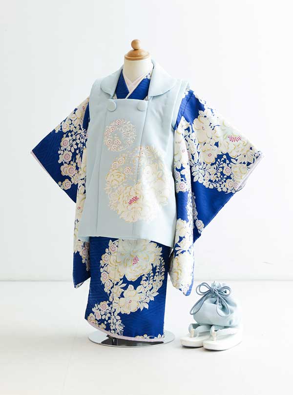 洗練されたデザインと美しい色彩が魅力の一枚です。深いネイビーブルーを基とした生地に繊細な花柄が施されており、自然の美しさを感じさせます。落ち着いた印象を与えつつ華やかさを演出し、生地の色合いが大人な雰囲気を引き立てます。 着物にあしらわれた花柄は色彩が豊かでありながらもシンプルさが際立ち、一つ一つの模様が優雅に連なっています。