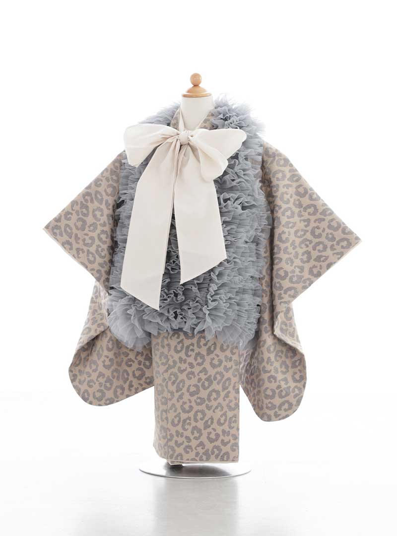 斬新な印象を演出する、レオパード柄の着物。 落ち着いたブラウンベースに淡い色合いのアクセントが加わり、可愛らしさと大人っぽさを兼ね備えたデザイン♪ 流行りのふわふわのファーや大きなリボンが華やかさをプラスし、周りと差をつけたいおしゃれな女の子にぴったりの一着です。 3歳男の子のレオパード柄の羽織とお揃いで着ても可愛いです♡