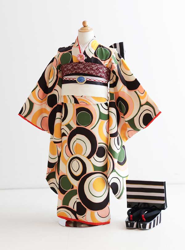 自社オリジナルのデザインなので周りと被りたくない方にオススメ!レトロな雰囲気を醸し出す柄がとても印象に残る1着です。 黒、黄色、緑、オレンジでまとめられた色合いには、希望、喜び、ぬくもり、成長といったポジティブなイメージが強く表されております。小物もボーダーで彩られオシャレな印象に仕上げてくれます。
