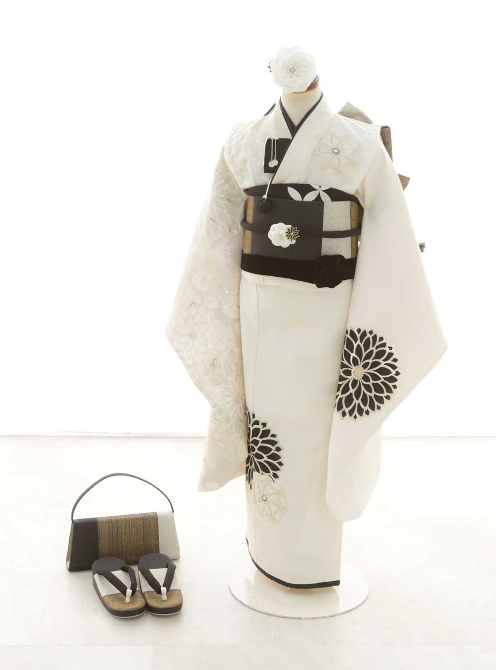 シンプルでクールな印象の1着。白黒だけの色味が大人っぽく小物も色味をまとめたコーディネートがオシャレにみせてくれます。周りと被りたくない方にはぴったりのデザイン。 白は古来より神聖な色とされており神主や巫女などの聖職につく人たちの装束や花嫁が着る白無垢など、穢れなき色として親しまれています。粋なデザインで個性をだしていただけます。