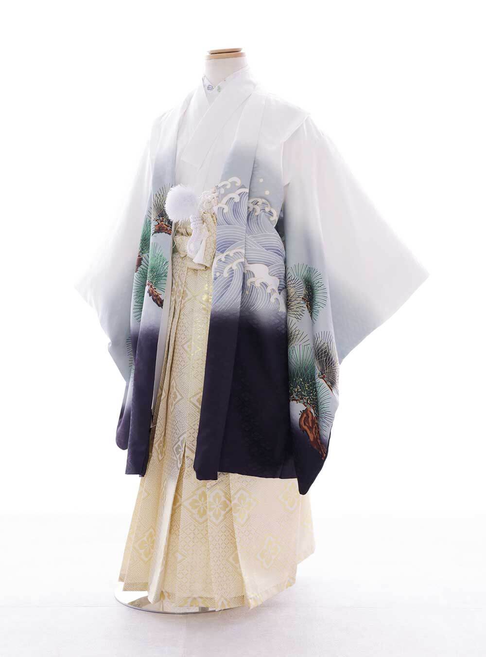 この着物は優雅な白地に波や松の木が描かれた品格と落ち着きを感じさせる一着です。グラデーションが美しいデザインで伝統的な和柄が上品に施されています。袴には淡いクリーム色が使われ、全体として清潔感と高貴さを演出しています。 この着物は日本の伝統美を継承しつつ、現代のセンスも取り入れたデザインが魅力的です。